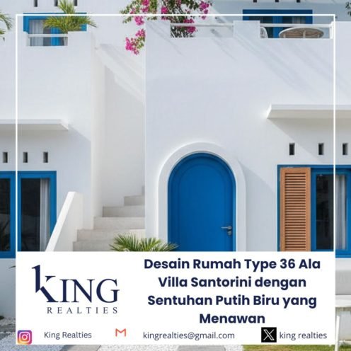 Desain Rumah Type 36 Ala Villa Santorini Dengan Sentuhan Putih Biru Yang Menawan